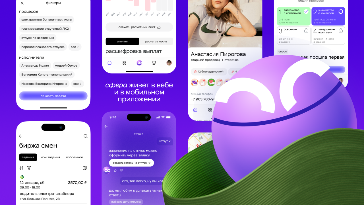Наша дизайн‑команда создавала Сферу так, чтобы ей можно было пользоваться быстро и без инструкций. Принцип простоты и чистоты был ключевым. Мы убирали визуальный шум, упрощали формы и контролы, расставляли акценты за счёт типографики.