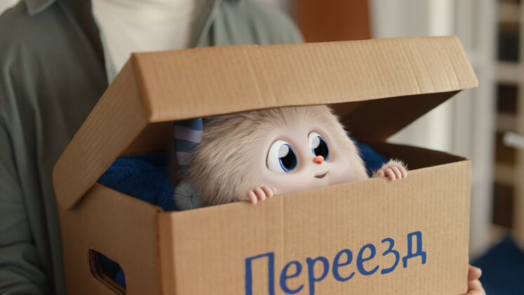 В рекламе маскот Домовенок символично переезжает в новую квартиру
