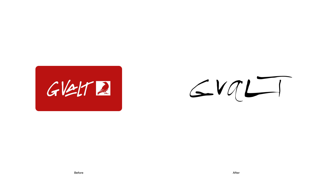 Концепция нового логотипа вдохновлена динамикой, которая была в старом логотипе, но мы ушли от прямого цитирования очень точечной (и неточной по образу) граффити-эстетики и сместили графический язык на территорию абстрактной чувственности без привязки к конкретной неформальной эстетике. Теперь Gvalt — это про ощущение полета, искренности и сильного чувства.