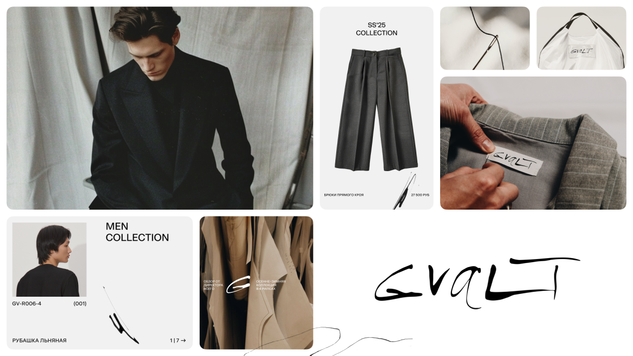 В основу стратегии обновленного бренда Gvalt лёг образ современного городского романтика. Наш герой — мужчина, в котором мужественность и чувствительность являются не противоположными, а дополняющими силами. Миссия бренда — раскрывать эту чувственность через моду.