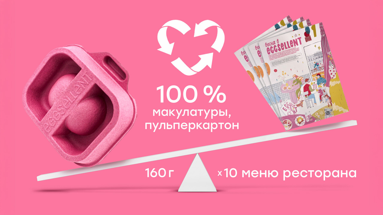 Всё началось с желания Eggsellent сдать старые бумажные меню на переработку — так они нашли СОЭМЗ. Так познакомились бренды, и из десяти старых меню родилась одна упаковка для керамической масленки из пульперкартона.