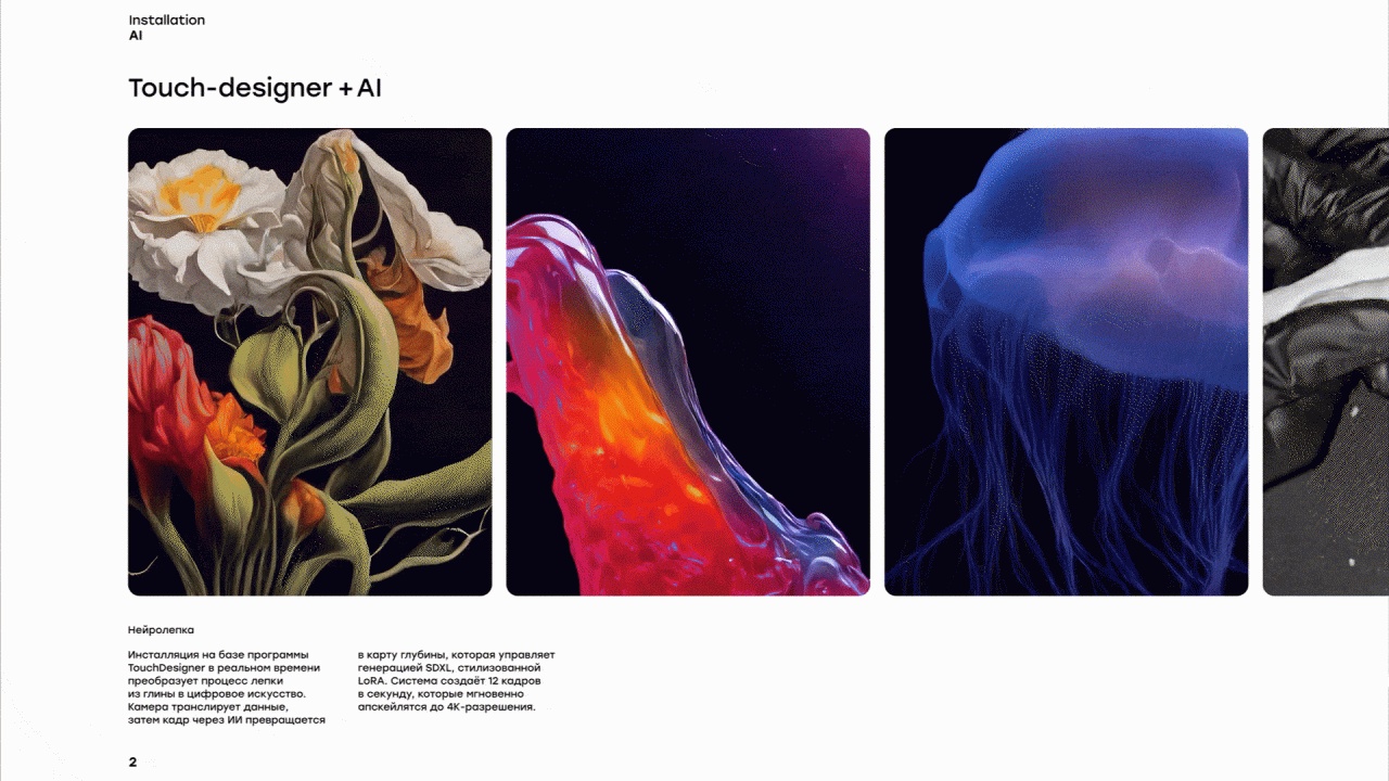 Перед студией Akademia стояла задача разработать контент для нескольких инсталляций, чтобы познакомить посетителей фестиваля в Гостином дворе с достижениями и проектами Москвы в социальной сфере, и заявить стратегию развития города к 2030 году. Важно было подчеркнуть, что Москва находится в авангарде технологического процесса и отразить инновационность решений, созданных для ее жителей. Чтобы представить сложные темы в увлекательном формате, мы придумали несколько разных механик, которые сделали инсталляции не только информативными, но и интересными. В зоне “Нейробиблиотека” можно было услышать советы от великих умов человечества, созданных с помощью ИИ: при приближении посетителей на экранах оживали портреты Чехова, Гоголя, Булгакова, Сократа и других известных личностей. Каждый персонаж давал мудрое наставление, связанное со здоровьем и образованием. Другая инсталляция позволяла создать собственный образ города будущего: на тач-экране можно было выбрать цвета и нарисовать абстрактную форму, а нейросеть в реальном времени генерировала на основе рисунка изображение города и выводила его на большой экран. Отдельного внимания заслуживает интерактивная инсталляция, демонстрирующая связь мелкой моторики и работы мозга. Посетители лепили из пластилина разные фигуры, а установленная сверху камера посылала изображение в нейросеть, которая интерпретировала увиденное и выводила на экран яркие и динамичные образы. Благодаря креативному подходу к использованию технологий и использованию разных форматов, нам удалось подарить посетителям фестиваля захватывающий опыт и привлечь внимание к темам, связанным со здоровьем, образованием и новыми технологиями.