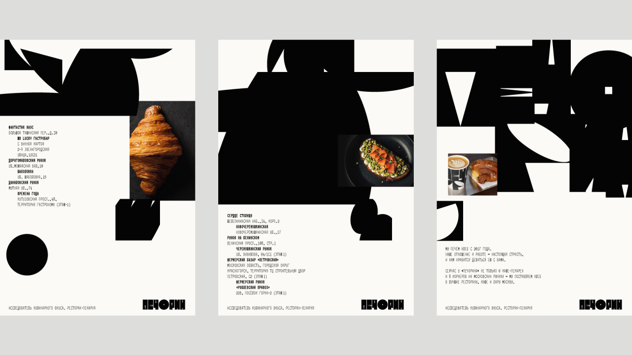 Печорин — существующая московская сеть пекарен, которая производит выпечку и ремесленный хлеб, рассчитанный на взыскательную аудиторию. В связи с появлением ресторанного меню и сервиса, и с открытием новых пекарен перед нами была поставлена задача разработки айдентики и уточнения текущего позиционирования «Печорина», стремящегося стать ещё более изысканным и элегантным.