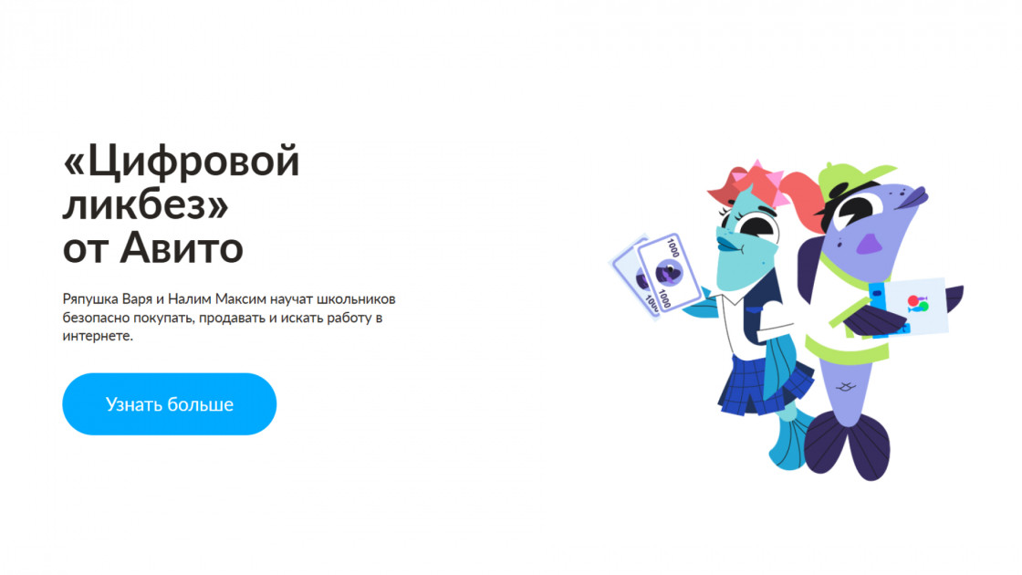 Авито запустил два сезона во всероссийском образовательном проекте «Цифровой ликбез». Во всех школах страны прошли уроки, где школьникам показали ролики о приключениях Ряпушки Вари и ее друзей, которые учатся правилам безопасных покупок в интернете и тренируются грамотно размещать собственные объявления в сети. В создании роликов, разработке героев и сценария приняли участие дети. Для поддержки проекта был запущен конкурс сценариев. Победители конкурса получили подарки и билеты на экскурсию в московский офис компании, а их истории легли в основу серий второго сезона.