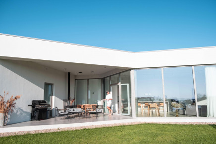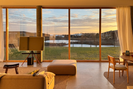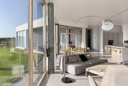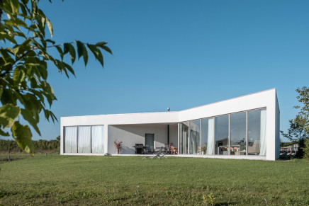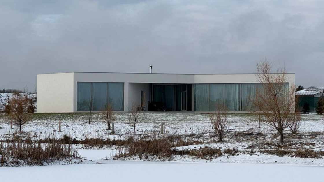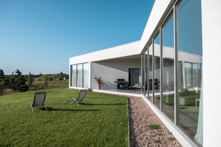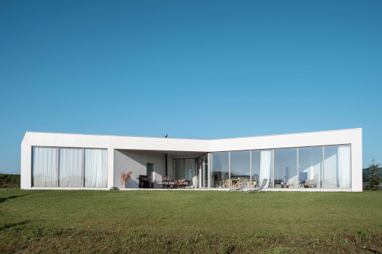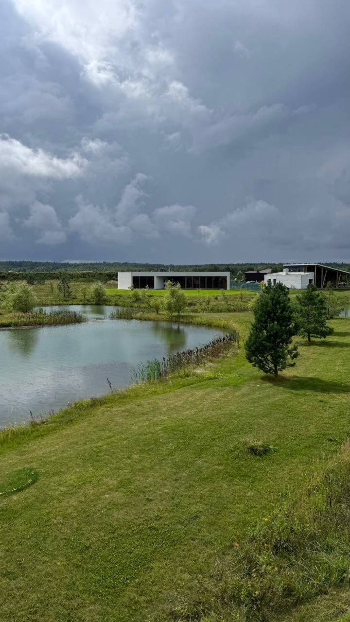 В этом проекте хотелось создать минималистичную виллу выходного дня рядом с полем для гольфа, с раскрытием панорамных характеристик участка. Форма и местоположение участка натолкнули на подобную планировку.