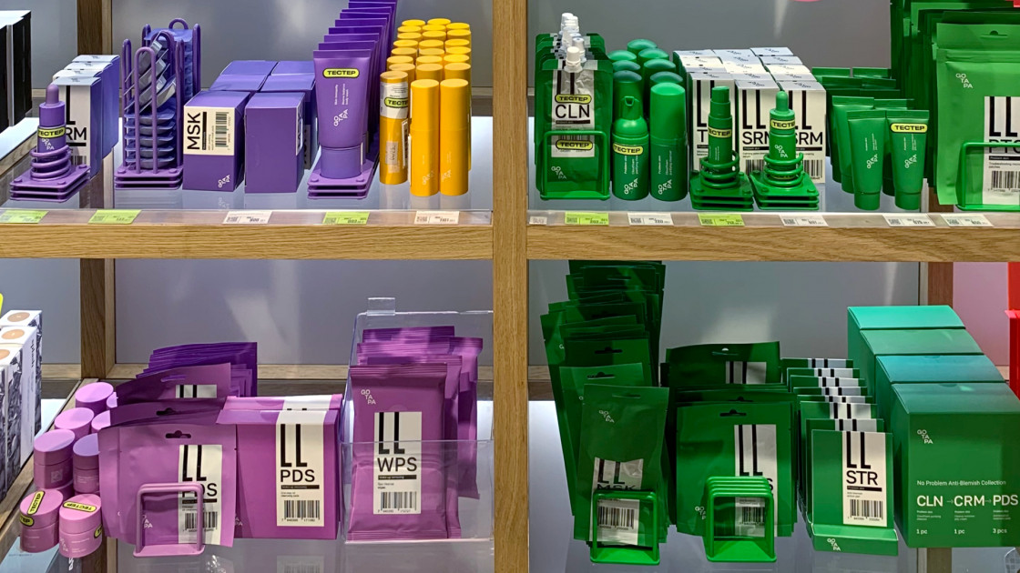 Чтобы объединить всё это в единую визуальную систему, в дизайне упаковки используется образ багажного тега и цветовое кодирование: одна линейка — один цвет. Поскольку косметика GO TAPA предназначена для тех, кто всегда в движении, в логотипе заложена метафора мобильности, которая показана через смещение.
