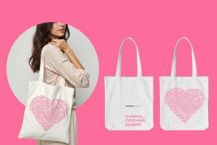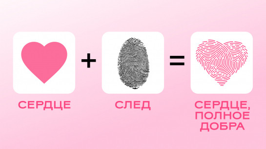 Также сердце является основой концепции «Оставь свой след». Она раскрывается в мерче, где используется принт-комбинация с сердечком-отпечатком, похожим на оставленный чьей-то рукой след. Эта идея иллюстрирует, что каждый человек, который занимается благотворительностью, дарит добро и свои ресурсы и оставляет свой след в жизни тех, кому необходима помощь и забота. Концепт развивается и в используемом шрифте, специально отрисованным от руки под этот проект.