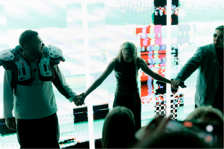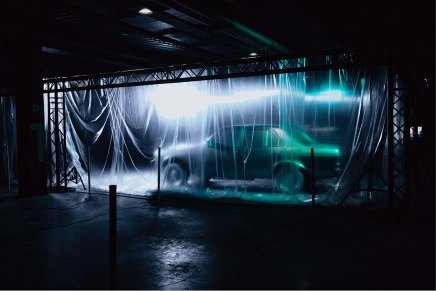 — соединили индустриальную эстетику с концептуальным дизайном, используя ретроавтомобили, бэкстейдж-конструкций из металла и 24-метровый экран;