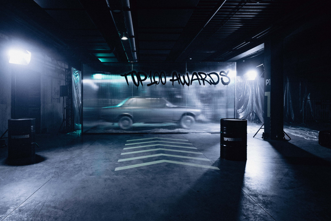 Визуальный продакшн: экран длиной 24 метра расчерченный на 20 парковочных мест, сценография, адаптированная под акустические особенности пространства, материалы в декоре — пленка, металл, отражающие поверхности. Анимация: имена участников визуализировались как в видеоигре о гонках, — места «прилетали» на экран, усиливая драму и вовлеченность.