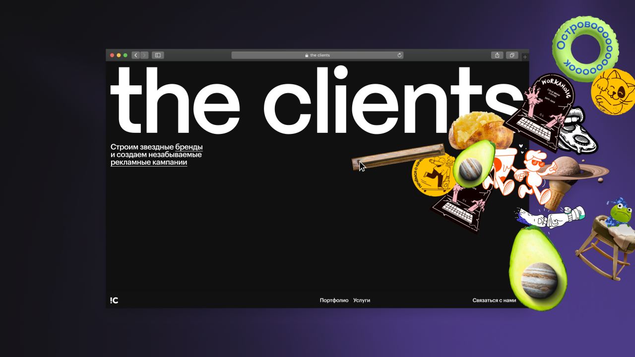 Решения: — Концепция и визуальный стиль. Разработали сторителлинг и образ сайта, а также создали креативную концепцию на основе хаоса: фирменный стиль органично «рос» из контента клиента. Визуальная хаотичность элементов, построенная на принципах коллажирования, стала метафорой богатого опыта, большого количества проектов и разнообразных компетенций агентства.