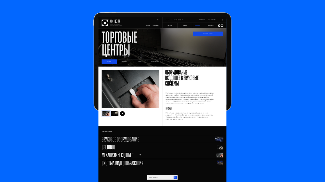 «АВ-Центр» — дистрибьютор и производитель профессионального аудио- и видеооборудования. Компания работает с B2B-клиентами и обеспечивает их оборудованием для любых помещений: от конференц-залов и караоке-баров до стадионов и храмов.
