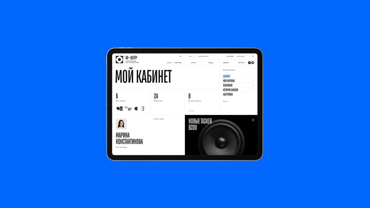В нём можно управлять заказами, повторять покупки, создавать списки товаров для будущих закупок и напрямую общаться с персональным менеджером. Вся история взаимодействий и контакты менеджера всегда под рукой.