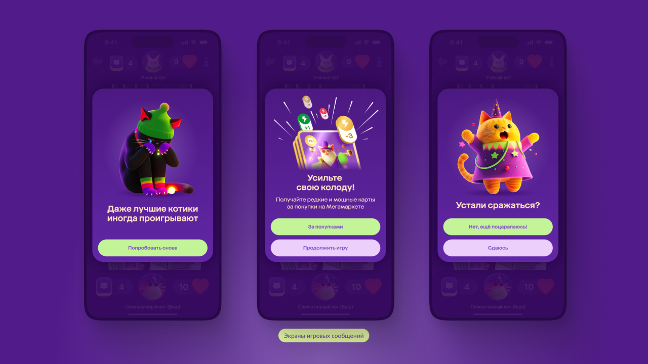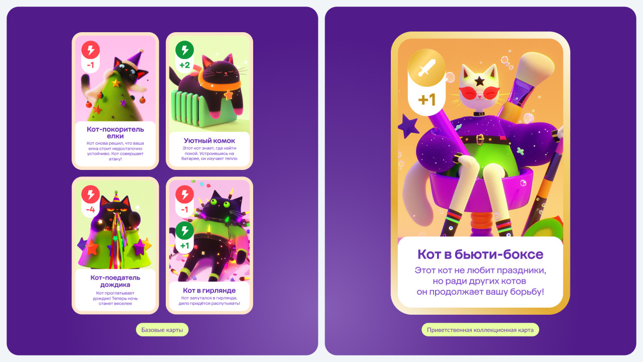 Решение 1) Мы разработали геймдизайн с простой механикой карточных боёв: для победы нужно было нанести максимальный урон сопернику, сохранив больше своих очков. 2) Для возврата пользователей в игру добавили в геймплей систему рейтингов – лиг, коллекционные карты за отдельные действия и бонусы за ежедневные визиты, которые открывали доступ к дополнительному контенту. 3) Сделали сбалансированную игровую колоду с атакующими, восстанавливающими и специальными картами. Включили туда “брендированные” карты для интеграции партнёров. 3) Придумали визуальную концепцию, персонажей, аватары, сделали дизайн карт и интерфейса, а также нарисовали комикс о героях игры для погружения в сюжет. 4) Разработали игру для запуска на 3х платформах (сайте, iOS и Android-приложениях), обеспечили поддержку на время акции. Результаты - 15 миллионов запусков игры - 30 тысяч пользователей – пиковый онлайн - 300+ тысяч уникальных пользователей - 48 сыгранных игр – средний показатель участника