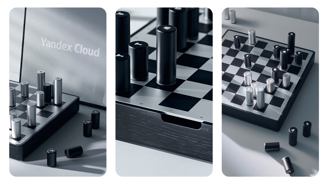 Шахматы стали центральным образом новогодней кампании Yandex Cloud — 2024. Этот образ воплотился в эксклюзивном подарке — премиальном шахматном наборе, сочетающем узнаваемый дизайн, удобство использования и стиль Yandex Cloud.
