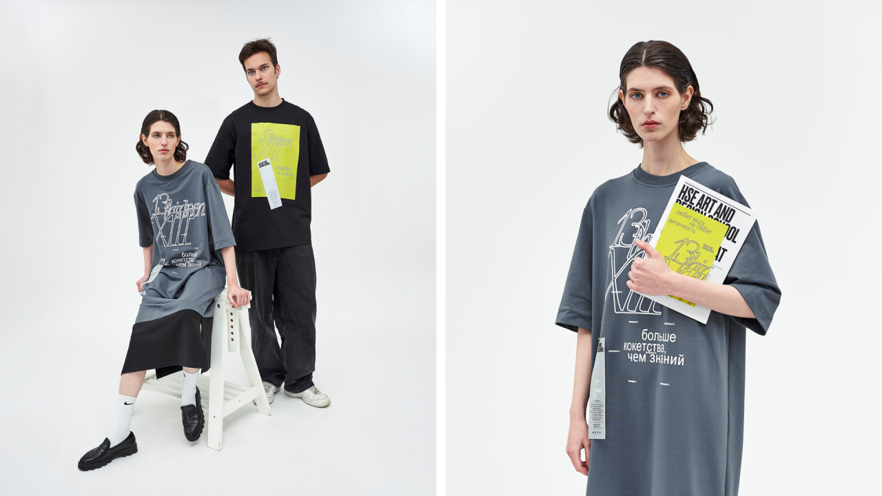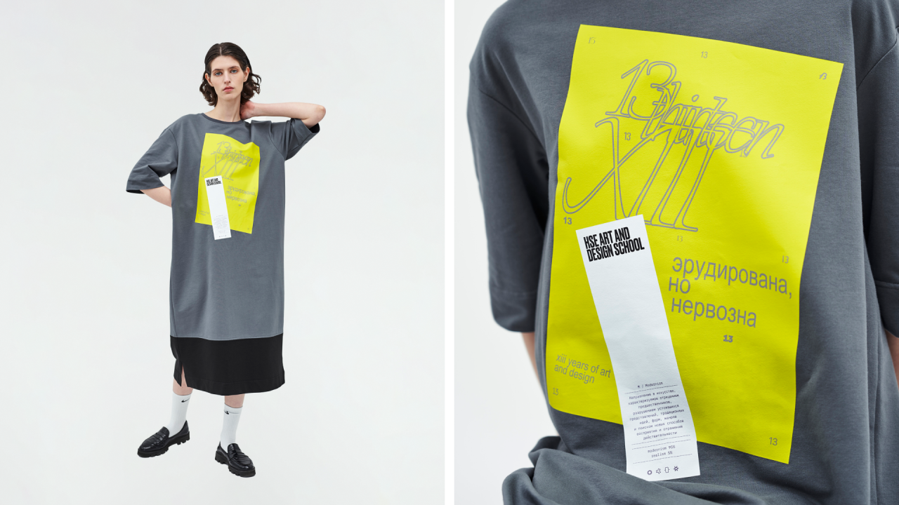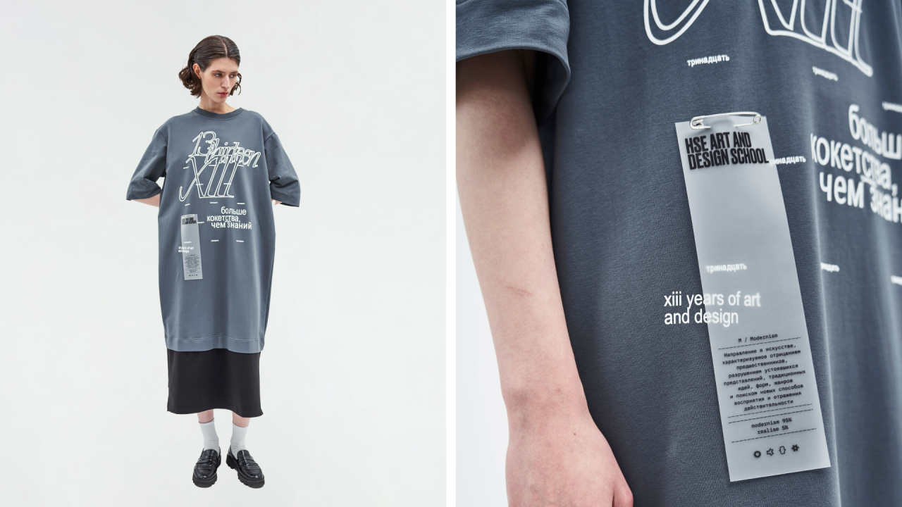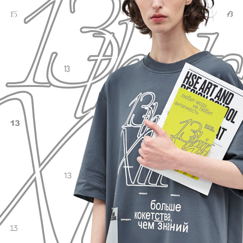 К празднованию 13-летия Лаборатория дизайна разработала капсульную концепцию мерча из двух предметов: оверсайз-футболки и платья. Оба — универсальные и выразительные носители, соединяющие комфорт повседневной одежды с возможностью яркого визуального высказывания. Коллекция создана по уникальным лекалам, в которых форма поддерживает идею, а крой подчёркивает индивидуальность. Дизайн коллекции построен вокруг архивных комментариев кураторов — лаконичных, ярких и безжалостно честных фраз, оставленных после собеседований с абитуриентами. Эти высказывания стали одновременно манифестом и шуткой, автофикшеном и точкой входа в культуру школы. Из тысячи заметок были выбраны лишь несколько — те, которые отзываются дизайнерам, и часто отражают наше ощущение от самих себя. Этим мерчом Лаборатория дизайна говорит спасибо всем блистательным, интересным, неудобным — очень разным людям, которые год за годом делают Школу дизайна НИУ ВШЭ такой, какая она есть.