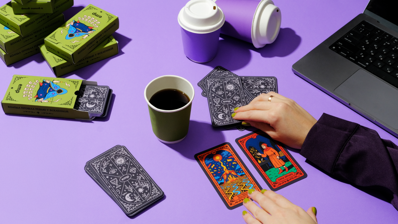Колоды уже разошлись по рабочим столам клиентов. У кого-то они лежат рядом с клавиатурой как талисман, у кого-то стали поводом для шутки на звонке. А главное — теперь на любой вопрос в офисе есть короткий и универсальный ответ: «Расклад такой».