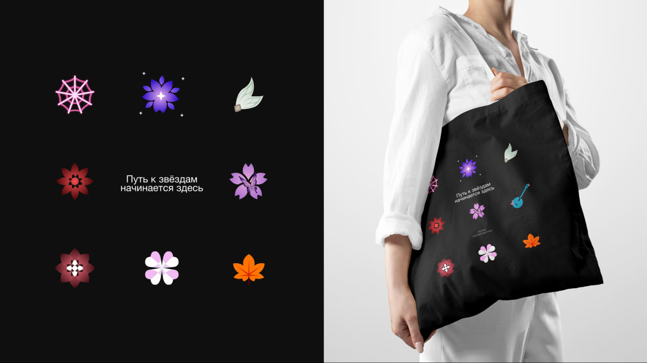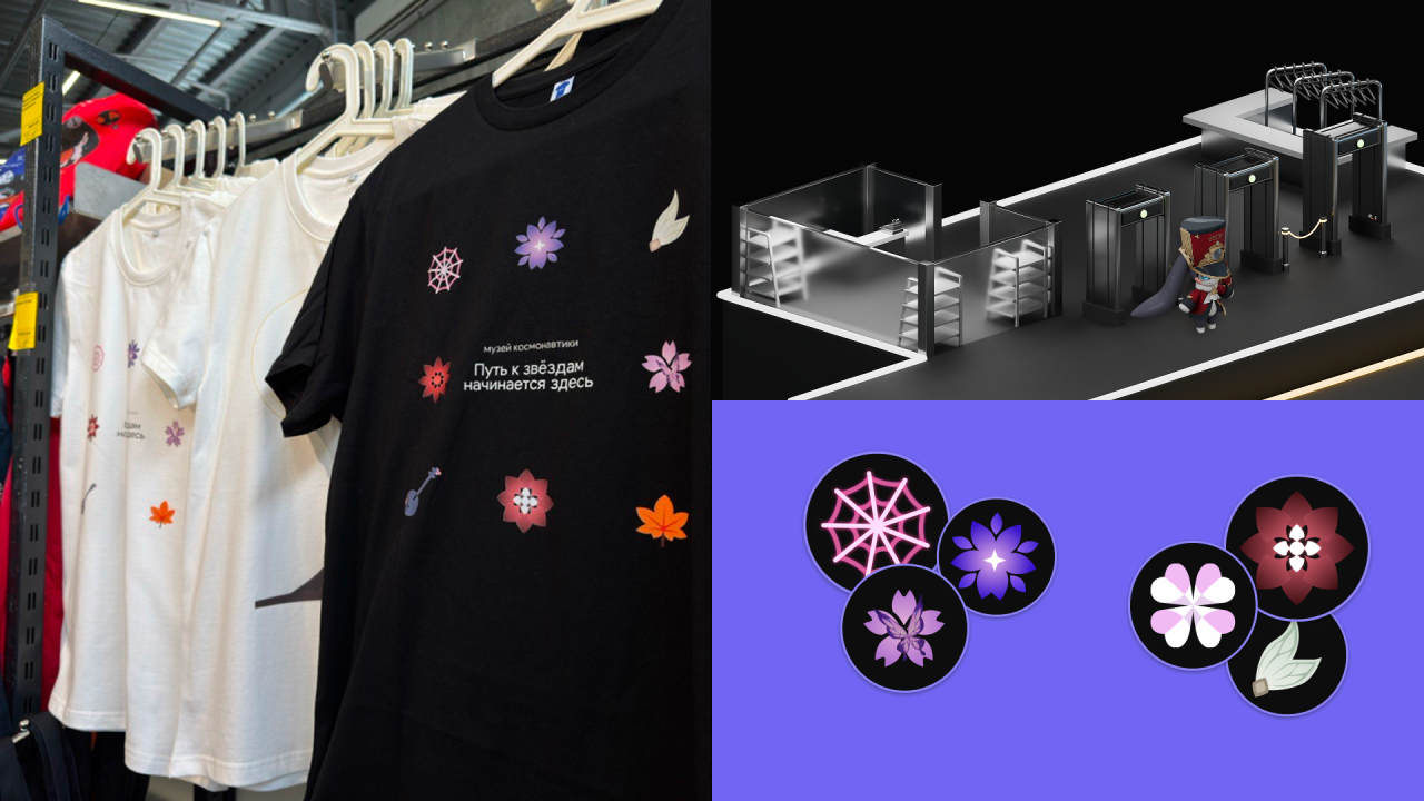 Каждый, кто прошёл квест, получал фирменный билет с промокодом для игры. Ещё можно было выиграть или купить мерч. Его дизайн (футболки, кружки, значки) был создан с нуля: по условиям коллаборации мы не могли использовать логотипы и официальные арты игры, поэтому разработали оригинальные символы для каждого персонажа. Эти знаки передавали их характеры и визуальные мотивы Honkai, оставаясь в рамках фирменной эстетики и цветовой гаммы игры.
