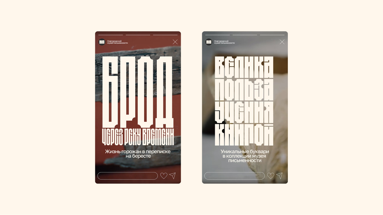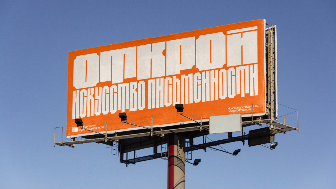 Для ребрендинга был разработан вариативный шрифт на основе букв памятника тысячелетия России. Он выражает монументальность, но вместе с тем подвижность и изменчивость славянской письменности.