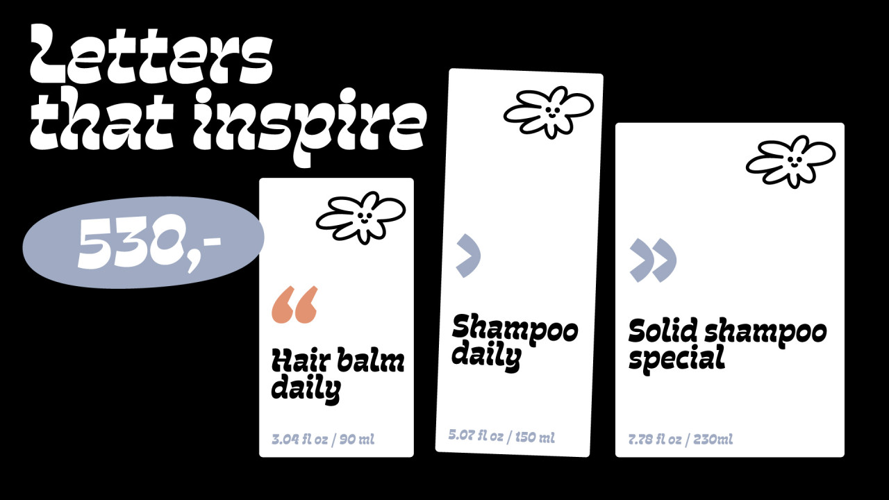 Сейчас Plumplush это два шрифта: Style X и Style Н, — с разницей в талии и степени акциденции. Style X для крупного кегля выше 48 pt. Его можно назвать шрифтом «от кутюр», потому что он производит впечатление. Второй, Style Н — как «пред-а-порте» или готовое платье для книги, периодики и упаковки. Хорошо сработает и в крупном кегле и небольшом абзаце от 24 pt.