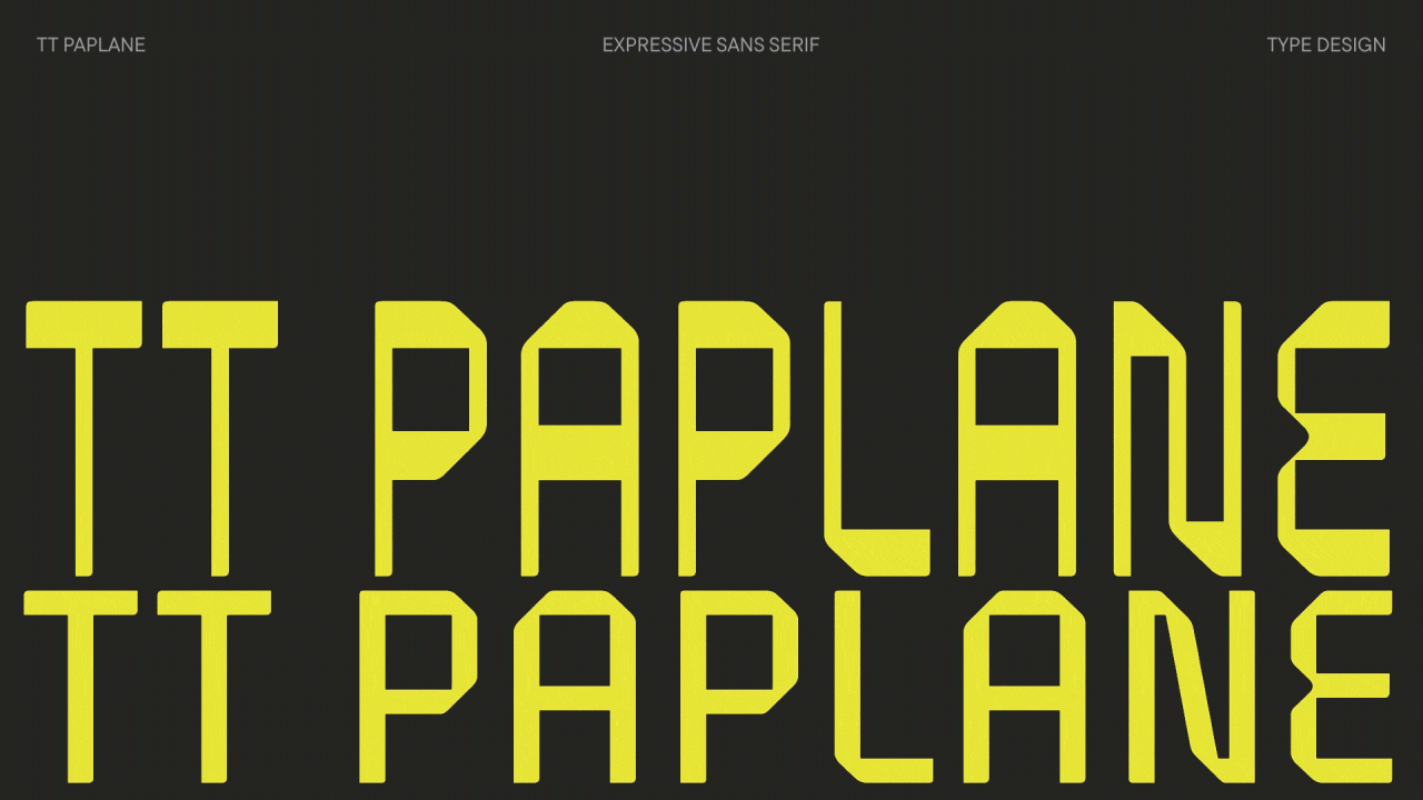 TT Paplane — это акцидентный гротеск с беззаботным характером, который переносит нас в светлый мир детства, где простой бумажный самолетик становится символом фантазии и свободы. Название гарнитуры, образованное от английского «paper plane», точно отражает её суть: буквы выглядят так, будто их сложили из бумажной ленты.