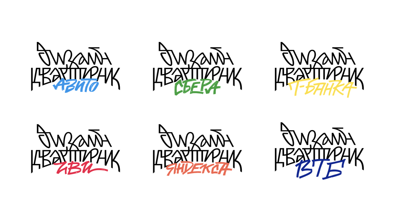 Ключевым элементом айдентики проекта стал леттеринг — нарисованная вручную композиция, которая задаёт атмосферу квартирника. Каждый следующий «квартирник» получает своё проявление леттеринга — переходящее знамя, вывеску и ковровую метку, которые визуально фиксируют уникальность события и делают его узнаваемым на рынке.