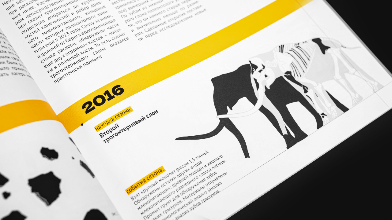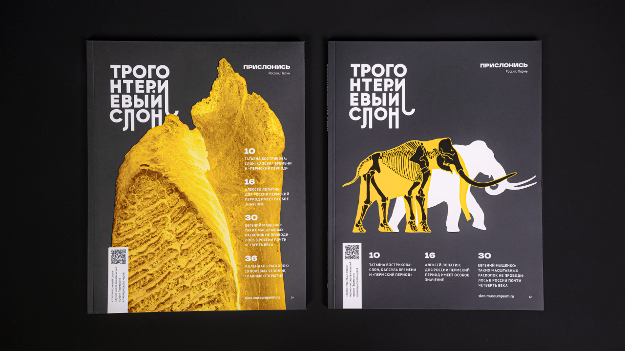 «Прислонись» — не просто журнал. Это издательский эксперимент на стыке науки, искусства и глянца. Его миссия — упаковать 15-летний опыт научной работы — палеонтологических раскопок и исследований — в формат, который заинтересует не только ученых, но и широкую аудиторию. Журнал рассказывает о редкой находке — скелете трогонтериевого слона, обнаруженном в 2010-м году в Оханском районе Пермского края. С помощью редакторской работы, хорошего дизайна, выверенных полиграфических решений издание помогает глубокому профессиональному знанию найти свое воплощение в современном формате и понятных визуальных образах.