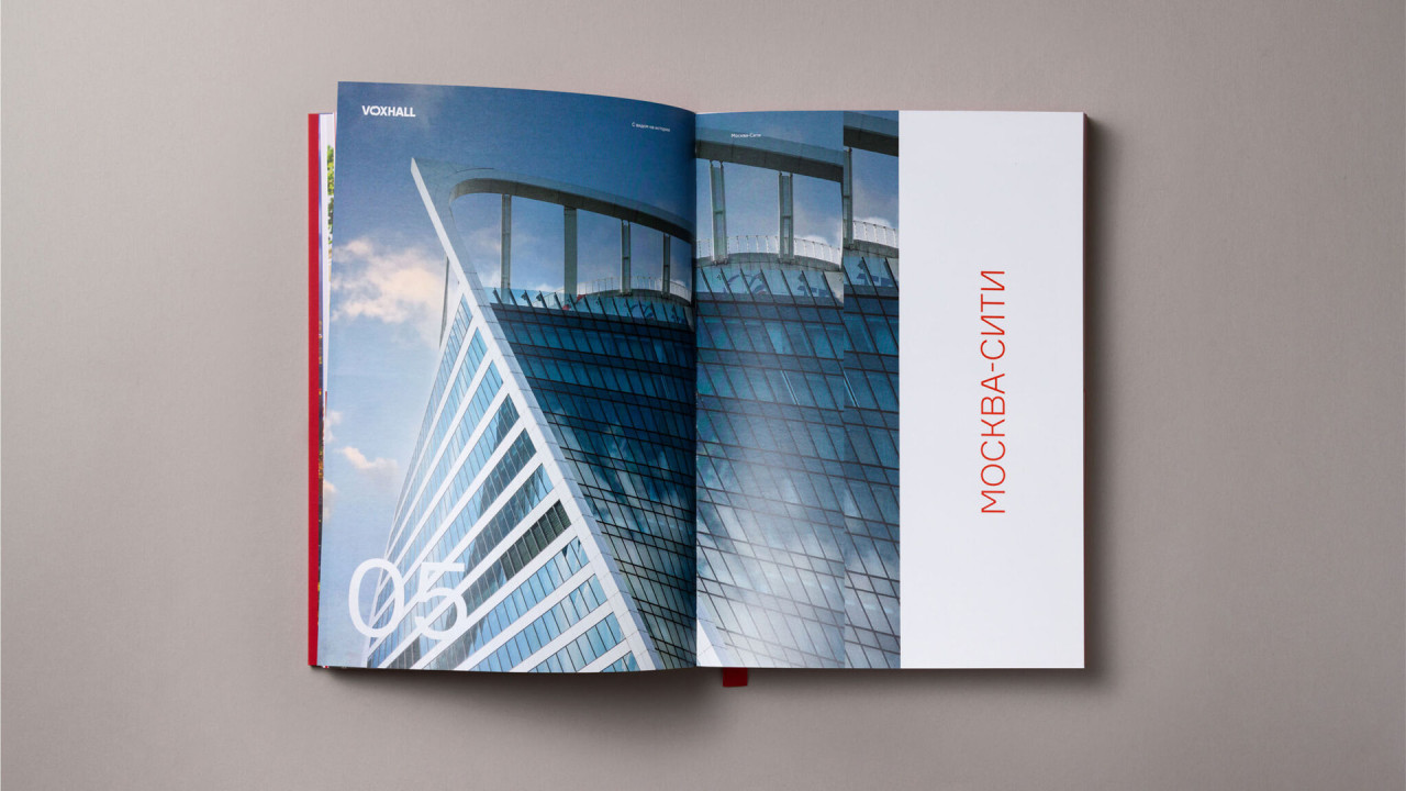 Говорят, что три фактора успеха в проектах недвижимости — это локация, локация и ещё раз локация. Это особенно верно для проектов премиального уровня. Девелопер Эталон обратился в Bunov+Ustinov для того, чтобы эффектно рассказать о новом жилом комплексе Voxhall с помощью подарочной книги, которую приятно листать и видеть на полке. Проект Voxhall расположен в центрально расположенном, богатом историей Павелецком районе Москвы. Вокруг — многочисленные исторические, архитектурные и рекреационные достопримечательности. Нашей целью было показать район «лицом». В качестве концепции и основы для структуры книги агентство предложило следование скользящему круговому взгляду с верхних этажей Voxhall. Такая концепция позволила включить как объекты в непосредственной близости, так и доминирующие на горизонте ориентиры, а также подчеркнуть богатство видов из здания. Мы назвали книгу «Voxhall. Виды на историю»