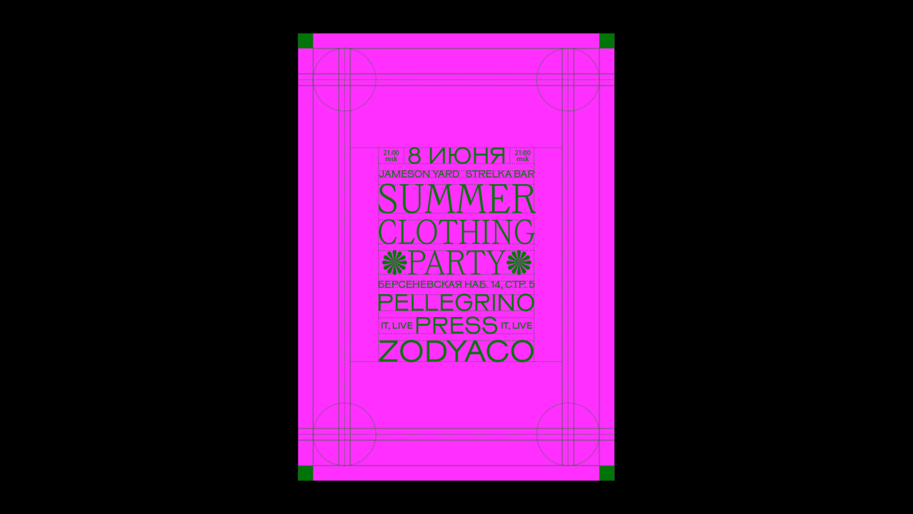 Нас вдохновили работы таких графиков, как Петер Беренс (Югендстиль), Чарльз Ренни Макинтош (Глазго), Йозеф Хоффман (Венский сецессион). Эти дизайнеры начали отказываться от излишней декоративности в пользу функциональности. Они были увлечены более архитектоникой нежели органикой и были заняты логичными и геометричеыми построениями. Их более прагматичный Ар-нуво лег в основу нашей графической идеи, но мы привнесли в него современный взгляд. У Стрелки много событийной коммуникации, поэтому к выбору шрифтов мы подошли очень тщательно. В проекте используются шрифты: Maregraphe от type.today и Ferro Grotesk от Brownfox.