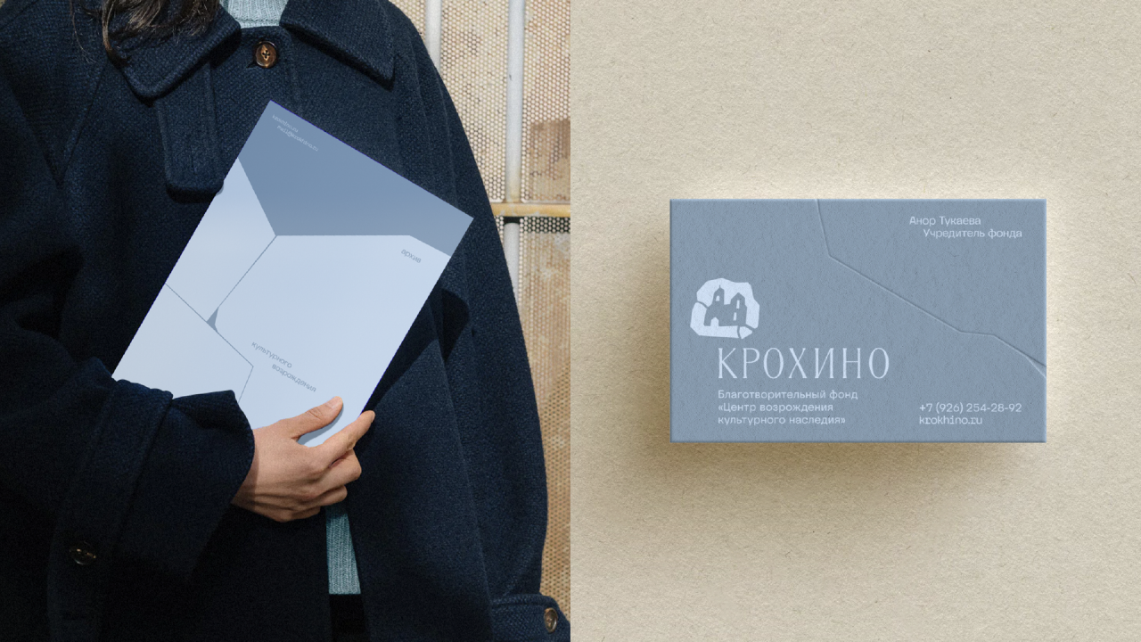 В основе стиля лежат разнородные осколки прошлого, формирующие целое, но напоминающие о годах разрушения. Разработанная айдентика создает новый образ Фонда — тонкий и хрупкий, но устойчивый, как храм, переживший затопление и годы безразличия. Такой же непотопляемый, как и сама память.