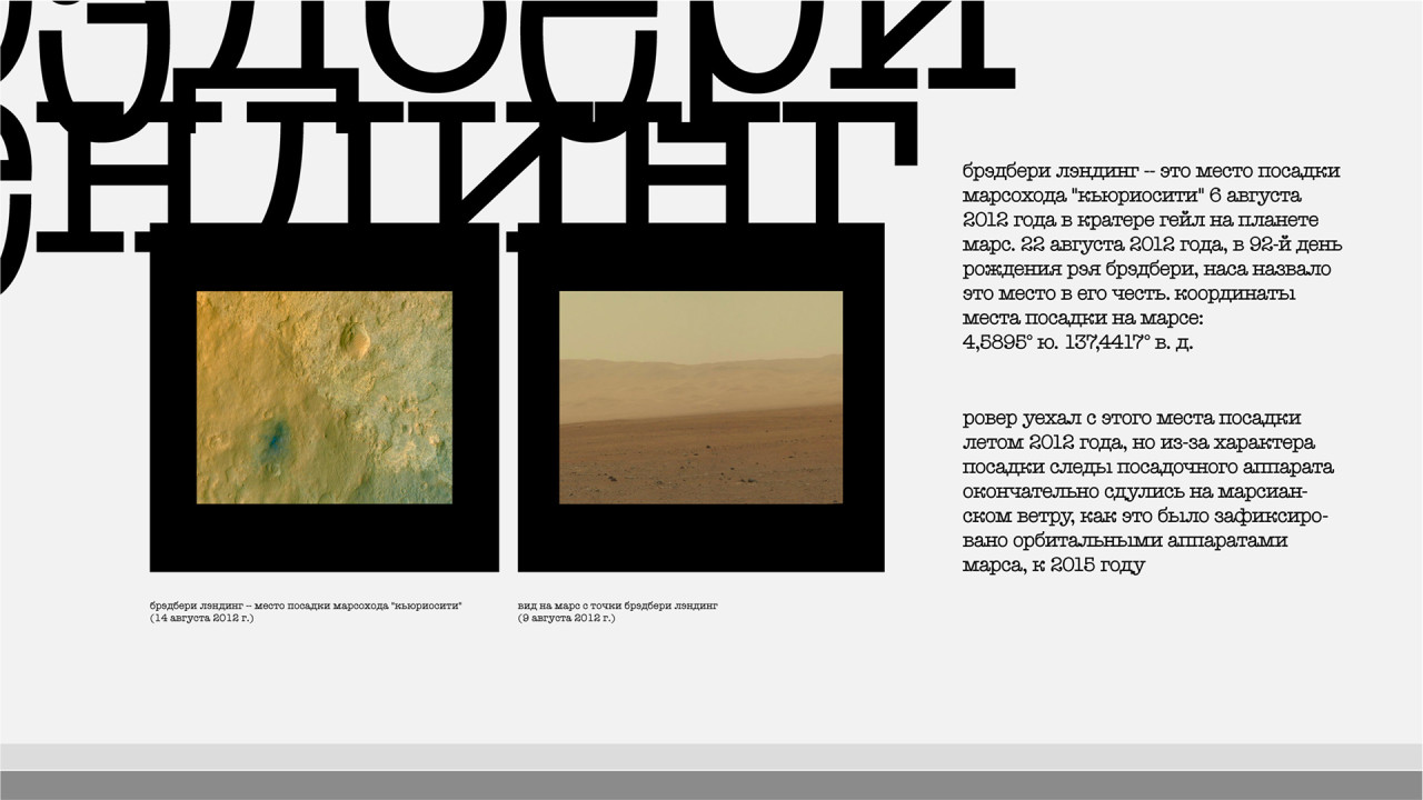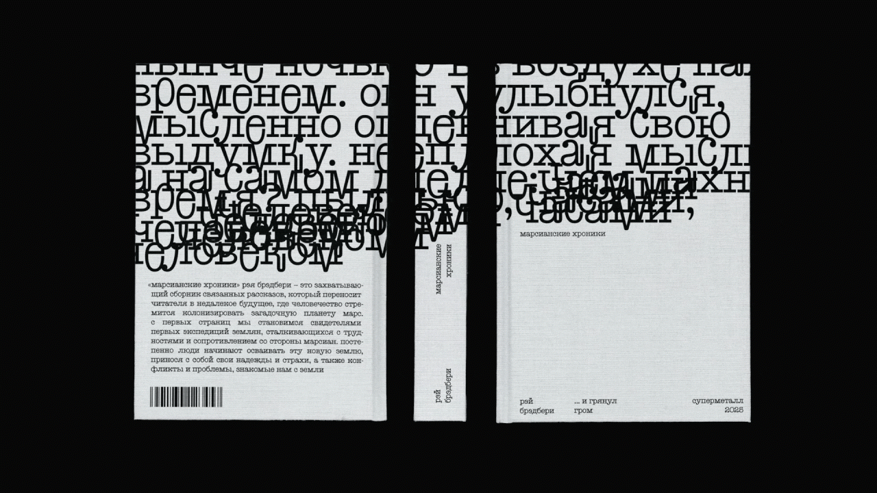 Для проекта был разработан шрифт Ray — гротескный тайпрайтер с набором альтернатив, отражающих концепцию фантастической пишущей машинки, эффект которой усиливается за счёт типографических приёмов.