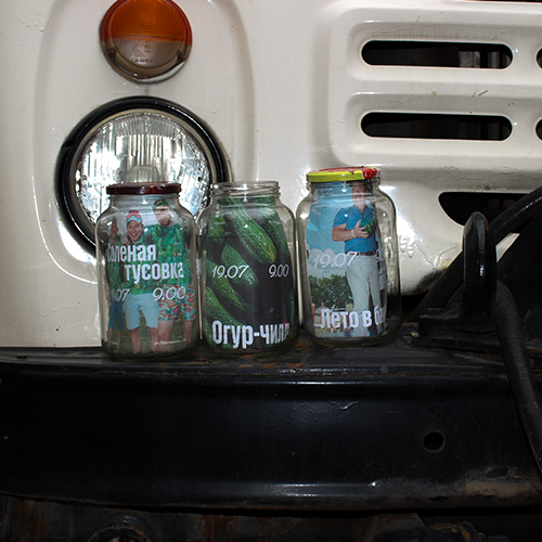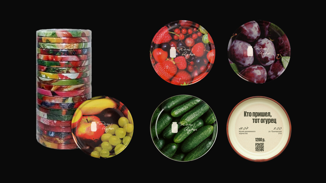 В проект вошли плакаты, билеты-крышки, футболки с принтами крышек и фирменным копирайтингом («Солись как хочешь», «Огур-chill», «Жадина-говядина солёный огурец...»), а также сувенир – закаточная машинка.