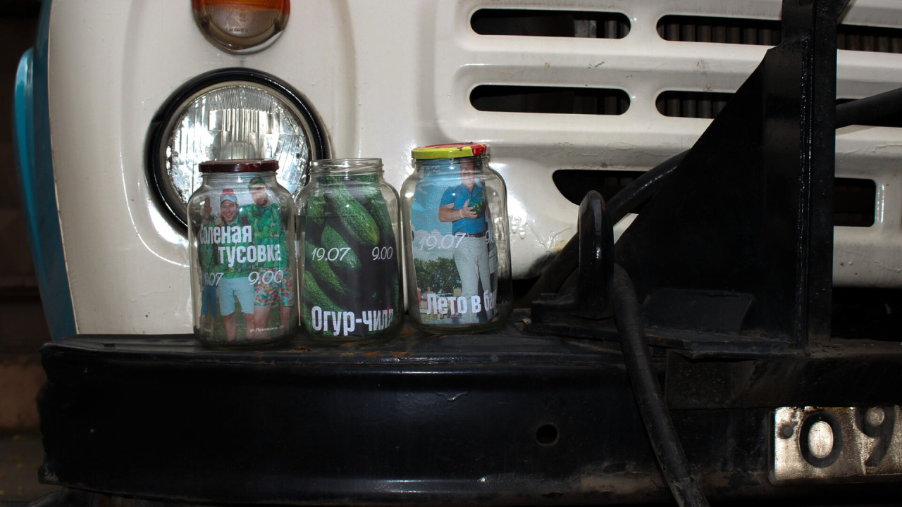 Плакаты были выполнены в форме банок, где сам текст афиши размещался внутри банки – как этикетка домашнего продукта. Развешенные по городу, они выглядели неожиданно и крафтово, вызывали улыбку, их фотографировали и выкладывали в сторис – формат оказался вирусным и инстаграмным, превращая айдентику в уличное событие.