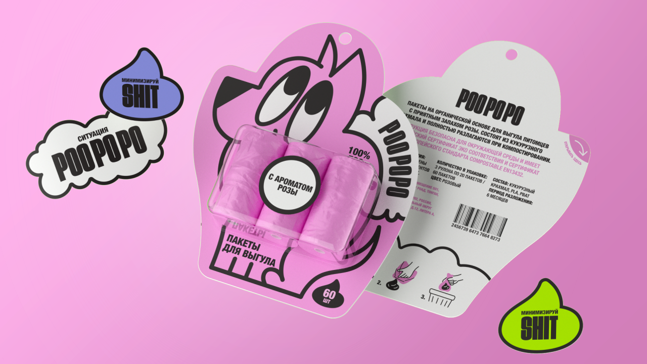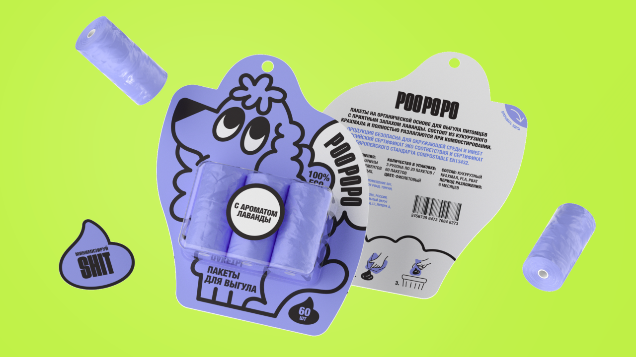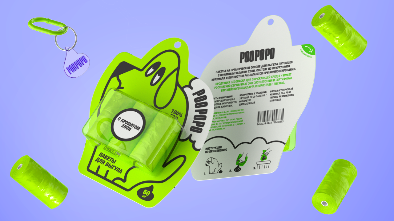 POO PO PO – это бренд компостируемых пакетов для выгула собак. Он создан для людей, которые заботятся не только об окружающей среде, но и о своем душевном спокойствии.