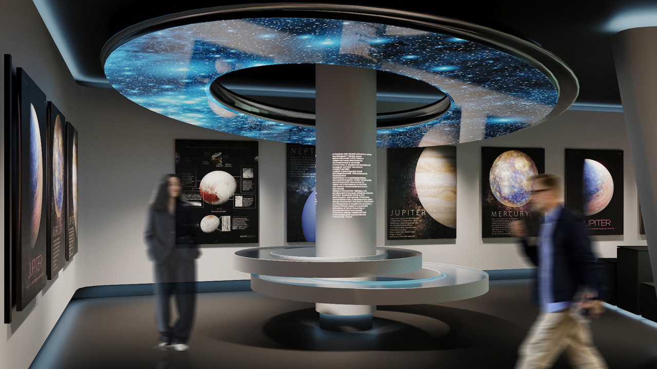 Современная экспозиция, которая приближает посетителя к открытиям Вселенной, знакомит с космосом через научные и культурологические аспекты, подчёркивает статус города и его особую роль в освоении космоса.