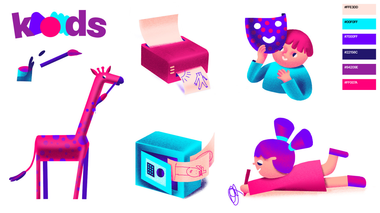 Иллюстрации, созданные в продолжение работы над айдентикой, развивают главную мысль проекта — важность заботы о произведениях юных творцов, которые могут вырасти в великих художников — и буквально показывают, как детская фантазия превращается в реальность.