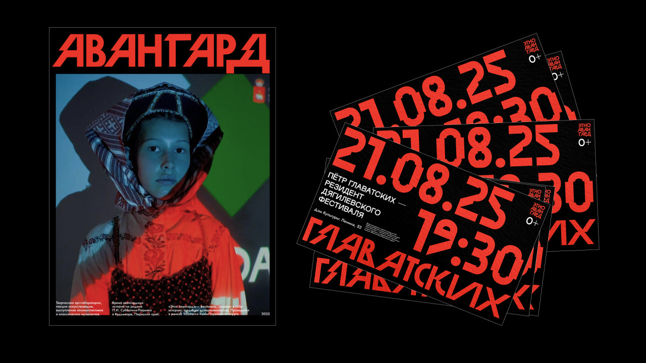 Айдентика фестиваля балансирует между народностью и актуальностью. Визуальная система строится на взаимодействии традиционного коми-пермяцкого орнамента и выразительных приёмов русского авангарда. Ключевой символ объединяет «Красный квадрат» Казимира Малевича и перну — национальный знак коми-пермяков. Это столкновение смыслов и эпох создаёт энергию обновления — тот самый импульс, который заставляет маятник времени раскачиваться между памятью о прошлом и мечтой о будущем.